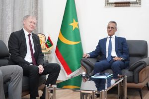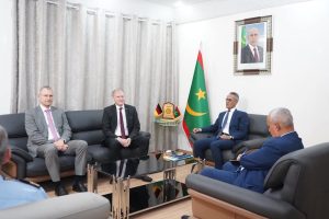 استقبل معالي وزير الصيد والبنى التحتية البحرية والمينائية، السيد المختار أحمد بوسيف، اليوم بمكتبه، سعادة السيد فلوريان رايندل، سفير جمهورية ألمانيا الاتحادية المعتمد في بلادنا.