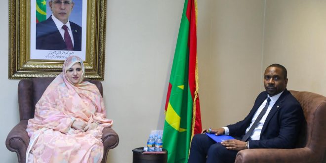 استقبلت معالي وزيرة العمل الاجتماعي والطفولة والأسرة، السيدة صفية انتهاه، اليوم الثلاثاء في مكتبها بنواكشوط، رئيس بعثة المنظمة الدولية للهجرة في بلادنا ، السيد إدريسا سومبارى.