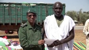 واستفادت من هذه المساعدات 64 أسرة، تضررت من ارتفاع منسوب مياه النهر والأمطار، من بينها 50 أسرة تضررت من ارتفاع منسوب مياه النهر في قرية أرو بوكر في بلدية توكمادي بمركز تيفوندسيه الإداري، و 14 أسرة تضررت من العواصف والأمطار في بلدية الطلحاية بمقاطعة لگصيبة، حيث تم توزيع مامجموعه أكثر من 3.5 طنا من المواد الغذائية الأساسية، كما استفادت 50 أسرة الأكثر تضررا من وحدات إيواء مجهزة بالأفرشة والبطانيات والناموسيات.