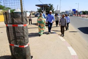 Cette mission a porté sur plusieurs sites stratégiques, notamment les tronçons de reboisement le long des axes principaux l’aire de détente en construction au niveau du bloc n°4 de la Ceinture Verte, l’espace vert proche du Pont de l’Amitié, ainsi que divers espaces verts aménagés au sein des quartiers. La visite s’est également achevée à la pépinière centrale de Tensoueilim, destinée à la production de plants.