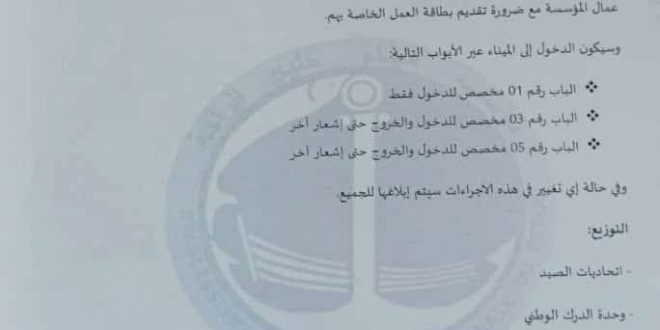 وأكدت إدارة الميناء أنه سيتم إبلاغ جميع الفاعلين بأي تغييرات قد تطرأ مستقبلاً على هذه الإجراءات التنظيمية.