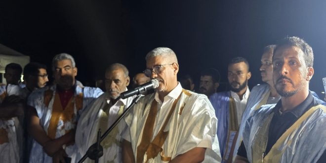 وفي كلمته أمام الحضور، قال عمدة بلدية العرية السيد السالك ولد بمب، إن هذه الأمسية هي لقاء سياسي، من أجل التعبير الصادق عن الامتنان والثقة تجاه فخامة رئيس الجمهورية السيد محمد ولد الشيخ الغزواني، الذي اختار العرية محطة من محطات زيارته الميدانية، حاملا معها بشائر تنموية طال انتظارها.