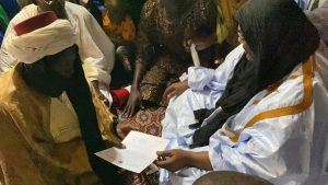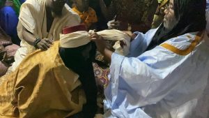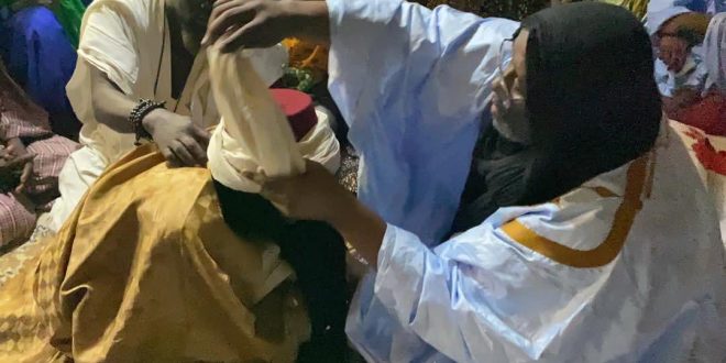 الخليفة العام للطريقة القادرية الفاضلية في غرب إفريقيا شيخنا الشيخ سيدالخير بن الشيخ بونن يشرف على تقديم بعض الأكابر من المريدين في السند السعدي الفاضلي القادري بمدينة نكابونكا