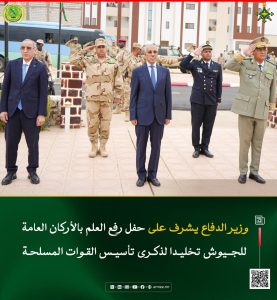 وقد تم تخليد هذه الذكرى المجيدة بتنظيم حفل لرفع العلم الوطني بمقر قيادة الأركان العامة للجيوش في نواكشوط تحت إشراف معالي وزير الدفاع وشؤون المتقاعدين وأولاد الشهداء؛ السيد حنن ولد سيدي، رفقة وزير الداخلية واللا مركزية؛ السيد محمد أحمد ولد محمد الأمين، وقائد الأركان العامة للجيوش الفريق محمد فال الرايس الرايس.