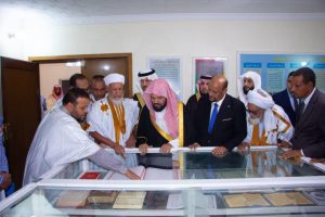 أدى فضيلة الشيخ أحمد بن علي الحذيفي إمام الحرم النبوي الشريف مساء اليوم زيارة لدار المصحف الشريف حيث كان في استقباله الاستاذ سيدي عبد القادر ولد اطفيل رئيس لجنة دار المصحف الشريف ونائبه وعدد من أعضاء اللجنة.