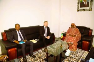 استقبلت معالي وزيرة الوظيفة العمومية والعمل السيدة مريم بيجل هميد، اليوم الخميس 18 ديسمبر 2025 بمكتبها في نواكشوط، سفير جمهورية ألمانيا الاتحادية المعتمد لدى موريتانيا، سعادة السيد افلو ريان رينديل.