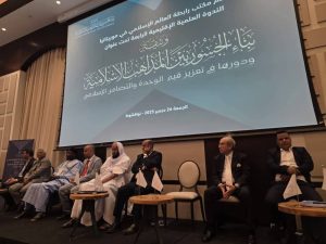 ودورها في تعزيز قيم الوحدة والتضامن الأسلامي وقد شارك في الندوة العديد من العلماء والفقهاء وممثل الامين العام لرابطة العالم الاسلامي