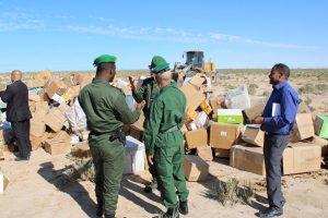 تمّ اليوم الثلاثاء، بقرية أجدير (25 كلم على طريق نواكشوط–روصو)، التابعة لبلدية العرية في مقاطعة واد الناگة، إتلاف وحرق أكثر من 642 كرتونًا من الأدوية المزورة والمنتهية الصلاحية، إضافة إلى مئات قنينات الخمور وكميات من المواد الغذائية المنتهية الصلاحية والممنوعات، وذلك في إطار الحملة المستمرة التي تشنها الجمارك لمحاربة التهريب وحماية الاقتصاد الوطني والصحة العامة.