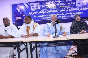 وفي هذا السياق، تحدّث النائب الأول محمد يحي ولد حرمة في مقاطعة لكصر، والنائب الثاني أتيرنو بارو في مقاطعة الرياض، فيما ألقى النائب الثالث يحي ولد أحمد الوقف كلمة في مقاطعة توجنين، حيث شرحوا مخرجات المؤتمر الأخير ومضامين قراراته، وأكّدوا على أهمية تفعيل الهيئات القاعدية، والانضباط والعمل الجماعي داخل الحزب.