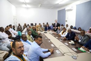 وفي نهاية الزيارة عقد معالي الوزير، في مباني الادارة الجهوية للصحة، اجتماعا بالطواقم استمع خلاله لمطالبهم، ورد على مختلف القضايا المطروحة، موضحا الخطوط العريضة لسياسة الحكومة في مجال التنمية الصحية على المستوى الوطني، وعلى مستوى ولاية كوركول، مطالبا ببذل المزيد من الجهود والرفع من مستوى الأداء، خدمة للمواطنين، ونهوضا بالقطاع الصحي.