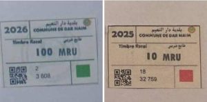 أقدمت بلدية دار النعيم، التابعة لولاية نواكشوط الشمالية، على رفع سعر الطابع البريدي الخاص بشهادة السكن من 10 أوقية جديدة إلى 100 أوقية جديدة ابتداءً من سنة 2026، وفق ما أفاد به مواطنون في المقاطعة.