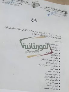 أصدرت إدارة التلفزة الموريتانية بلاغًا أعلنت فيه تعليق عمل مجموعة من المتعاونين لديها، وذلك بسبب عدم التحاقهم بأماكن عملهم.
