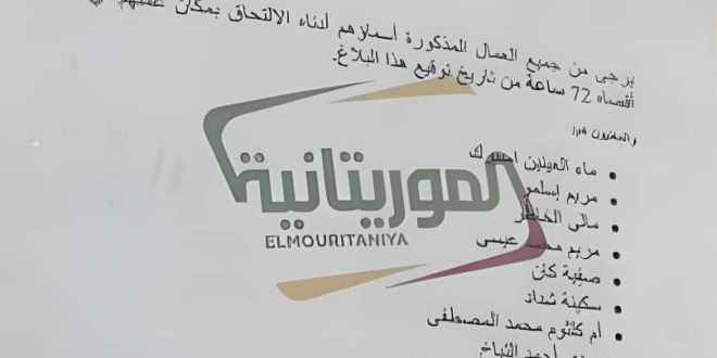 التلفزة الموريتانية تعلّق عمل عدد من المتعاونين وتمنحهم مهلة للالتحاق