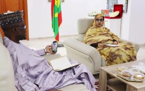 Son Excellence la Ministre de l’Environnement et du Développement durable Madame Messouda Baham Mohamed Laghdaf, a reçu ce mardi 10 février 2026, Monsieur Mustapha Garba, Secrétaire exécutif de l’Agence Panafricaine de la grande muraille verte, accompagné de Monsieur Sidna Ahmed Ely, Directeur général de l’Agence nationale de la grande muraille verte.