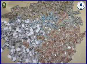 كما أسفرت العملية عن ضبط كميات من الأوراق المطبوعة لفئات من العملة المزوة كانت في طور الاعداد.