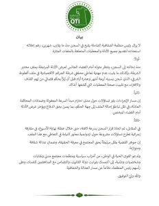وندعو القوى الحية في الوطن، من أحزاب سياسية ومنظمات مجتمع مدني ونقابات و شخصيات وطنية ، إلى التمسك بثوابت دولة القانون، والتضامن مع المناهضين للفساد، وعلى رأسهم رئيس المنظمة، دفاعاً عن مسار العدالة والشفافية.