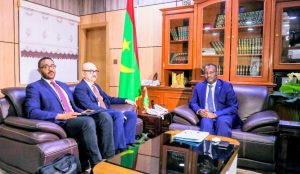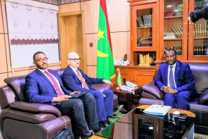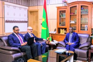 استقبل معالي وزير العدل السيد محمد ولد اسويدات، وزير الشؤون الخارجية والتعاون الإفريقي والموريتانيين في الخارج وكالة، اليوم الاثنين بمكتبه، وفدا من الأمم المتحدة، ضمّ كلا من السيد آسيف خان، مدير قسم السياسات والوساطة بإدارة الشؤون السياسية وبناء السلام، والسيد عثمان محمد، ممثل مجلس الأمن، وذلك في إطار تعزيز علاقات التعاون والشراكة