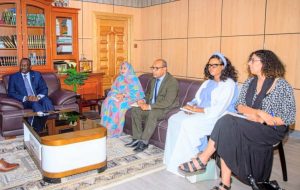 استقبل معالي وزير العدل، السيد محمد ولد اسويدات اليوم الثلثاء بمكتبه السيدة سيلفي برتراند، ممثلة الأمم المتحدة لمكافحة المخدرات والجريمة في إفريقيا الغربية والوسطى وتناول اللقاء علاقات التعاون القائمة بين موريتانيا والمنظمة، خاصة في مجالات مكافحة المخدرات والجريمة المنظمة إضافة إلى تطوير آليات التعاون الفني وتبادل الخبرات وأكد الطرفان خلال اللقاء على ضرورة تعزيز الشراكة بما يسهم في ترسيخ دولة القانون ومكافحة مختلف أشكال الجريمة المنظمة ، وجري اللقاء بحضور السيدة نفيسة الشيخ محمد الحسين مكلفة بمهمة و السيد اعمر ولد القاسم المستشار المكلف بالتعاون والمتابعة والتقييم