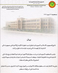 أعربت الجمهورية الإسلامية الموريتانية عن قلقها الشديد إزاء التطورات الأمنية الأخيرة في جمهورية مالي، على خلفية الهجمات التي استهدفت عدة مناطق من البلاد.